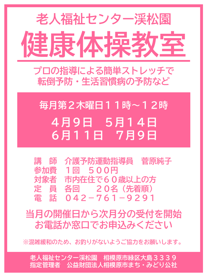 ワンコインでできる介護予防、健康増進のための健康体操を開催します!